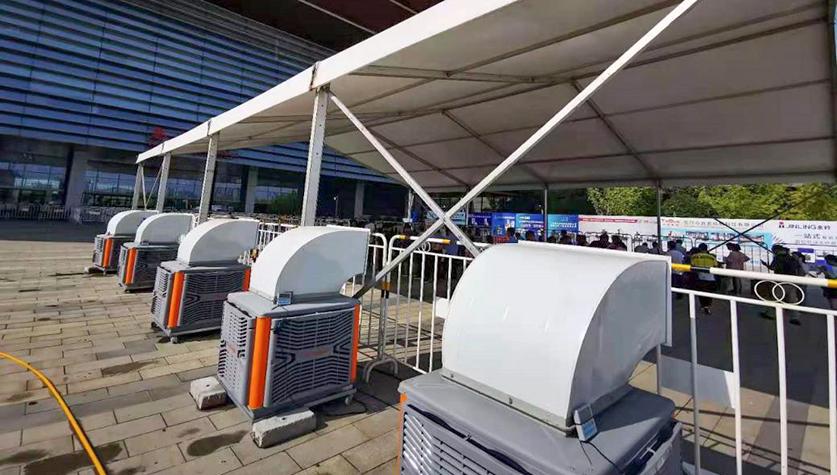 归于户外活动场所通风降温解决方案,具体使用移动式冷风机,还是使用移动式工业吊扇,大风扇,甚至是两种设备组合使用,则视实际使用场地需求而定。